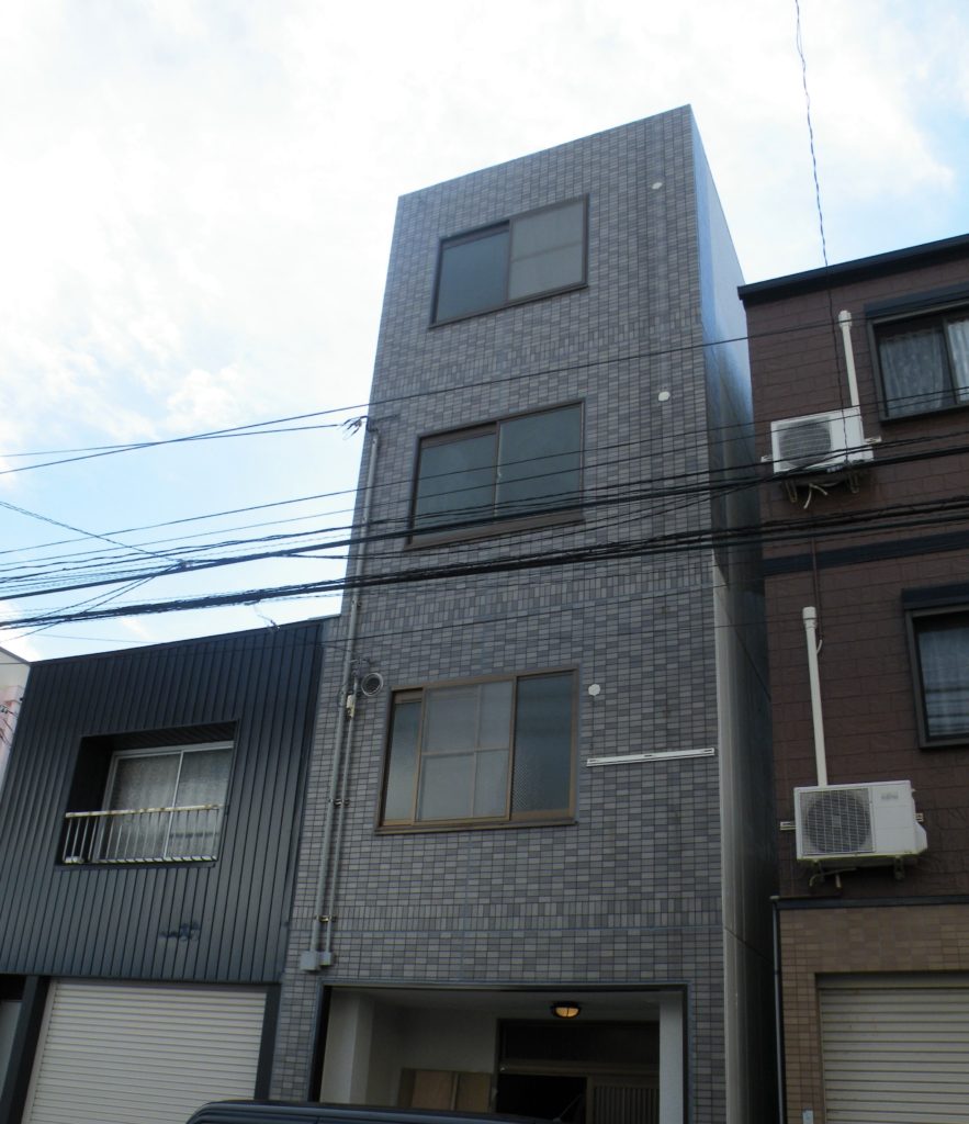 ・所在地:尼崎市立花町1丁目 ・敷地:34.54㎡ ・構造:鉄骨造4階建 ・建蔽率:80% 容積率:400% ・用途地域:近隣商業地域 ・築年月:平成7年2月 ・道路幅員:北側6.3m